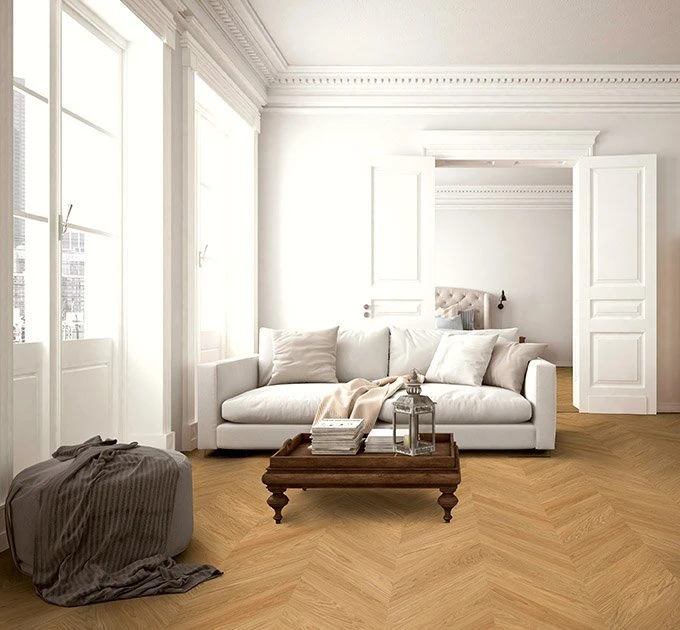 Tako kot klasicen vzorec ribje kosti, je tudi chevron ali francoska ribja kost eden najbolj prestižnih parketnih vzorcev, ki je v zadnjih letih postal absolutni trend v notranjem oblikovanju. Navdih črpa iz zgodovine, a je danes povsem prilagojen sodobnim zahtevam.