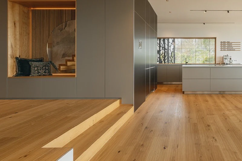 Hrastove deske pomenijo brezčasno eleganco, izjemno trajnost in vsestranske oblikovne možnosti – vrhunski parket, ki uresničuje sanje o bivanju.
