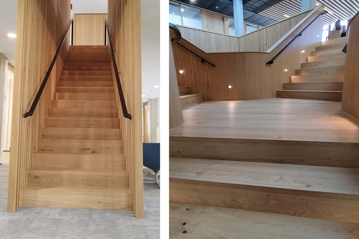Zato zahtevajo premišljen dizajn in natančno izvedbo, usklajeno s stilom objekta in opremo. Ne glede na to, ali izberete zračno, prosto lebdeče stopnišče, stensko podprto ali polžasto izvedbo: obloga surovih betonskih stopnic s parketnimi stopnicami je v novogradnjah in prenovah doslej zahtevala dolgotrajna terenska merjenja in vrhunsko natančnost, da vse “sede” brez pripomb.