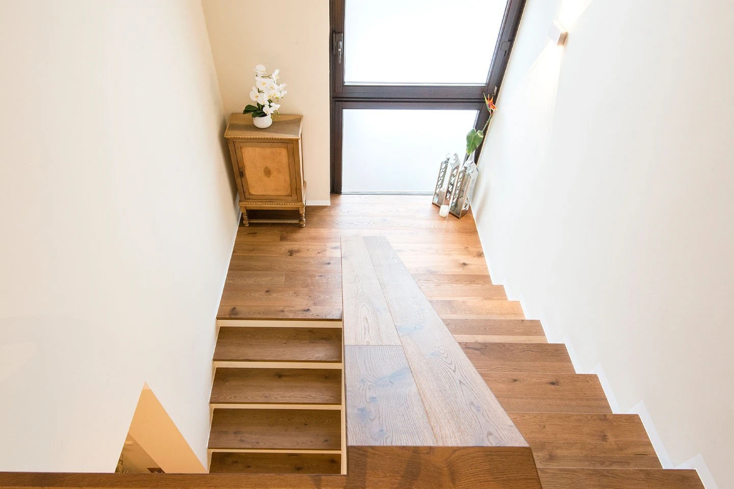 Široka izbira vrst lesa, razredov (izborov) in površinskih obdelav, ki jo poznate iz našega programa parketa, je na voljo tudi za poljubno stopnišče in poskrbi za harmoničen celosten videz vašega doma. Tako kot naši parketi tudi naš stopniščni sistem zagotavlja vrhunsko, profesionalno izdelavo ter omogoča tekoče prehode in individualne zasnove, s katerimi do popolnosti zaokrožite svoj dom.