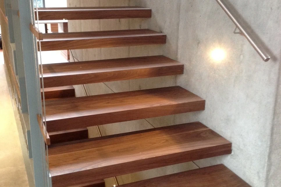 Stopnice niso več le neposredna pot v zgornje nadstropje, temveč dovršen oblikovalski element, ki močno vpliva na prostorski učinek. “Masivna” parketna stopnica daje vašemu stopnišču arhitekturno eleganco in prestižen videz. Najpogosteje se uporabljajo na kovinskih konstrukcijah ali kot obloge za konzolne strukture. Takšne stopnice odsevajo maksimalno transparentnost in lahkotnost.